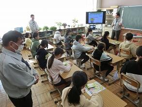 1月14日、5年生は関東電気保安協会の方々を講師に迎え、「電気に関する出前授業」を受けました。はじめにエナメル線とクリップを使って、簡易モーターを制作しました。輪にしたエナメル線がくるくると回り出すと、子どもたちからは歓声が上がりました。また、身近で使っている電気の危険性についても学びました。コンセントにほこりがたまると、思いがけなく火事になることも学びました。また、ショートの様子も実験で再現していただきました。火花が出て導線が溶ける様子を見た子どもたちは、とてもびっくりしていました。いろいろと教えていただいた関東電気保安協会のみなさん、ありがとうござした。