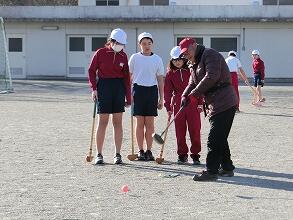 2月7日、今年度最後のクラブが行われました。スポーツクラブでは、地域のおじいちゃんやおばあちゃんたちに教わりながら、ターゲットゴルフを実施しました。初めは、まっすぐ打つことも難しかったようですが、みなさんにコツを教わりながら楽しく活動することができました。寒い中、準備や片付けも含め、クラブ活動にご協力くださった岩舟グランドゴルフクラブのみなさん、本当にありがとうございました。