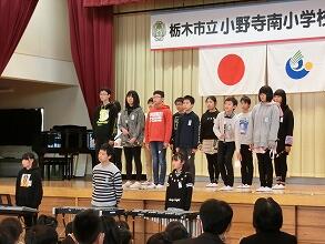 2月22日、小野寺南小学校閉校式を挙行しました。約60名の来賓の皆様、そして保護者の皆様約120名の参加をいただき、盛大に実施できましたことに、まず感謝申し上げます。閉校式は、二部構成で行いました。第一部は閉校式典です。学校長式辞、市長様をはじめ3名の方にご挨拶いただきました。それぞれのお立場からの、本校閉校の思いやお考えを聞かせていただきました。その後は閉校記念映像、子どもたちによるわかれの言葉と歌の披露をしました。子どもたちは、閉校の思いを言葉や歌で一生懸命に表現することができました。その後閉校宣言を受け、式典が終わりました。休憩後は発表会を行いました。学年ごとに歌やダンス、体育や音楽など、工夫した発表が行われました。子どもたちのがんばる姿に、感心させられました。最後はこれまでもボランティアさんへの感謝の会などで披露してきた、全校生による合奏・ダンスでした。1~3年生によるかわいらしいダンスと、4~6年生の合奏が、とても印象的でした。お忙しい中ご参加いただいた来賓の皆様、そして保護者の皆様、ありがとうございました。小野寺南小そして小野寺小に、これからもご支援よろしくお願いします。