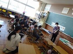 2月10日の業間活動の時間に、4年生が手話教室と点字教室で学んだことを他の学年に紹介する活動「手話点字プロジェクト」が行われました。4年生に教わりながら、指文字で自分の名前を伝えることができました。