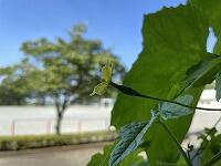 ですが、花の下に小さなゴーヤの実がなり始めました。大きさは約1cmほど。