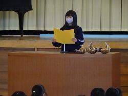 校長先生から、大谷翔平選手に頂いたグローブを紹介されると、みんな目を輝かせていました。児童代表作文発表もしっかりできました。