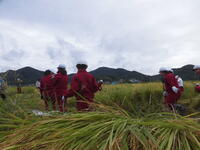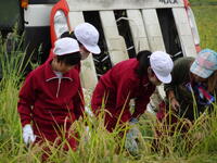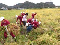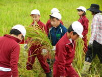 9月19日(金)、毎年、お世話になっている小久保様のご指導のもと、5年生が稲刈りの体験をしました。5月に泥んこになりながら田植えをし、水田の前を通りながら稲の成長を見守ってきた5年生は、今日の日をとても楽しみにしていました。ようやく収穫ができ、お米ができるまでには時間もかかりとても大変だということや、収穫の喜びを知ることができました。