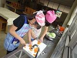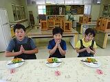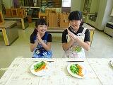 5月29日(火)3.4校時に初めての調理実習をしました。「コンビネーションサラダ」と「ゆで卵」を作りました。子どもたちは、この日をずっと楽しみにしていました。気合いは十分!! 包丁の使い方はオッケー!! ゆでると鮮やかになる野菜にうっとり。おいしく調理できました!! 大成功です!!
