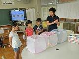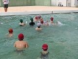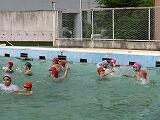 28日にスポーツクラブとクラフトクラブが合同で、プールに入りました。子どもたちの希望で、簡単な水球をした後、自由時間を楽しみました。水球では、各チームが作戦を立て、ポジションを決めていました。ゲームが始まると、ボールとともに動き回り、白熱した試合となりました。自由時間は、それぞれ思い思いに活動し、充実した時間を過ごせたようです。