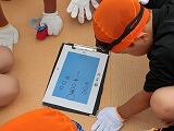 一年生5人が協力して富士山を作りました。これは、図工の「いろいろならべて」という学習で、ペットボトルのキャップを使って、巨大な富士山を作りました。