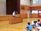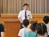2学期始業式の後に、健康委員会を中心にプール納めを行いました。代表児童が、今年水泳でがんばったことを発表し、学校長からは、今年の成果を生かして、来年の水泳学習もがんばっていこうというお話がありました。最後に全員でプールのほうを向いてお礼を言いました。