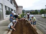9月25日(火)、雨の合間をぬって、5・6年生で協力して畑にうねを作り、大根の種をまきました。霜が降りる前に収穫予定です。これから水やりなど、がんばってお世話をしていきます。おいしい大根ができますように。