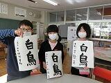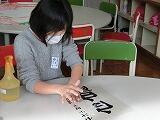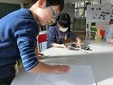 4年生は、書写の時間に書いた作品を自分達で裏打ちしました。半紙を裏返して机に置き、霧吹きで濡らした後、障子を貼るのりを指で塗り広げます。そこに空気が入らないように薄い画用紙を貼りつけ、三連休中乾かしておきました。休み明け、学校に来ると、自然に机からはがれてきていました。そーっと手ではいでみると、空気がほとんど入っていないきれいな裏打ちができていました!はさみで余分な画用紙を切り取って完成!裏打ちをすると、見栄えがさらに良くなることがわかりました。
