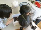 飽和ミョウバン水溶液を冷やして、結晶作りを行いました。水溶液を入れた発泡スチロール容器のふたを開けるときまでは、大きな結晶ができているか、どきどきわくわくでしたが、中をのぞいて大きな結晶ができていると、「きれい」「できていて良かった」と歓声があがりました。そのあと電磁石パワーの体験も行いました。これから5年生最後の理科の学習として、電磁石のしくみについて学習を行っていきます。