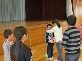 4月25日1年生歓迎集会がありました。「おおかみさんおおかみさん今何時」を楽しんだ後、「自己紹介ゲーム」で1年生と上級生が名刺を交換しました。早くお互いに名前を覚えてたくさん遊べるといいですね。最後に各学年からプレゼントのメダルをもらい、1年生は大喜びでした。