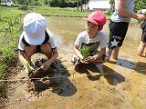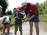 27日(月)、地域ボランティアの川島様の御指導の下、全校児童で田植えをしました。初めてを田植えをする1年生には、上級生が教えながら、全員で苗を植えました。また、田植えの後、雑草防除と肥料を兼ねた米ぬかを5年生がまきました。みんなで頑張って植えた苗から、今年もたくさんの喜多笑米がとれるでしょうか…!楽しみです。