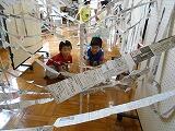 図工の時間、長ーい紙をつくって、「スパイダーアドベンチャー」を作りました。チケットを配り、「10個のシールを見つけながら、時間内に通りぬけてください。」と全校生にチャレンジしてもらいました。学校公開日には、お母さん方や小さい子たちもチャレンジしてくれました。子どもたちは、みんなにやってもらうことができ、またお店番も楽しむこともでき、大満足でした。
