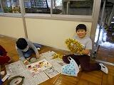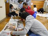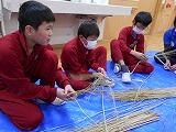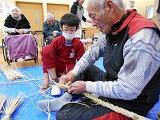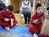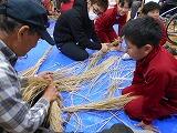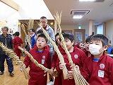 17日2・3校時、4・5年生はみすぎの郷デイサービス室で、3名の地域ボランティアの方々からしめ縄の作り方を教えていただきました。始めの、わらをなう工程で、子どもたちは苦戦していました。横で、すいすいとわらをなうボランティアの方々の慣れたすばやいワザに見とれていました。その後も、ボランティアの方々に優しく多大なる援助をしていただきながら、それぞれのしめ縄が出来上がりました。最後に子どもたちがはさみで飛び出したわらを切って整え、見事しめ縄を完成させ、喜んでいました。学校にもしめ縄を作っていただいたので、玄関に飾って新年を迎えたいと思います。見守っていただいたり、声を掛けてくださったり、一緒にしめ縄を作ってくださったりと、みすぎの郷利用者のみなさんとも交流ができました。場所を提供してくださったみすぎの郷様、指導してくださったボランティアの皆様、ありがとうございました。