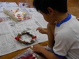 19日共有の時間、今年も全校児童で川島和実さんからいただいたリースに飾り付けをして、クリスマスリースを作りました。それぞれが思い思いの飾り付けをして、お気に入りのリースができました。クリスマスツリーの前に作品を並べると、一気にクリスマスムードで華やぎました。早くリースを作り終えた児童は、まつぼっくりツリー作りにも取り組みました。リースもツリーも、個性があふれた作品になりました。来週にはクリスマスパーティーやクリスマス集会が予定されています。子どもたちには楽しみがいっぱいです。