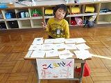 1月17日昼休み、2・3年生にお客さんになってもらいおみせやさんごっこをしました。国語の『ものの名まえ』で一つ一つの名まえとまとめてつけた名まえを学習したので、4人がそれぞれお店屋さんになり、そこで売る品物をたくさん考え、作りました。2・3年生にたくさん買ってもらい、大繁盛でした。