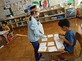 1月10日(金)に新里様から3回目の版画指導をいただきました。第3回目は、「刷り」でした。インクののばし方、つけ方、ばれんでのこすり方を丁寧に教えていただきました。バックにスポンジローラーでカラーインクをつけるやり方も教えていただきました。子どもたちは、自分の力で刷ったという自信もあり、刷り上がった作品にとても満足そうでした。新里様にはお忙しいところ御指導いただき、ありがとうございました。