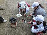 塩作り、つぼ焼き芋は、海水を汲みに行くことや、薪を割ったり新聞紙を丸めたりしてかまどの準備をすることから始まりました。北小の3人は、サツマイモに針金を刺したり、七輪で炭火を起こす作業を率先して引き受け、意欲的に活動していました。焼き芋は、大変おいしくできました。