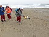 海浜ウォークラリーでは、活動班で協力して様々な課題に挑戦しながらゴールを目指しました。難しい課題もありましたが、北小と南小で力を合わせてがんばりました。指導員の方からも「全チーム、ハイスコアだね。」とほめていただきました。