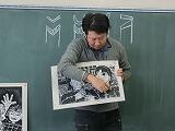 人物の輪郭や洋服など、彫り方が分からなくなって質問すると、外部指導者の方がやさしく教えてくださっていました。