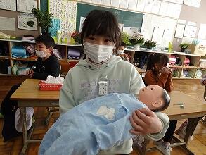 2月25日、2年生は「ぼく、わたしのたんじょう」というテーマで、学級活動の授業を行いました。養護教諭が赤ちゃんの始まりやその育ち方など、いろいろな資料を使って説明しました。子ども達はそのお話を一生懸命に聞いていました。また、赤ちゃん人形を一人一人が抱っこしました。抱き方を教わった子ども達は、少し恥ずかしそうに赤ちゃん人形を抱っこしていました。自分も小さい頃にこうして抱っこされていたんですね。最後に担任から「命の大切さ」のお話を聞きました。子ども達は改めて自分の誕生に興味を持ったようです。