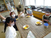 グループで協力して野菜炒めとスクランブルエッグを作りました。