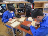 どのクラスもこれまで3年間過ごしてきた中で、学校にあると便利なものを考え、布や木材、絵の具や紙粘土などを使って作製しました。後輩のみなさんにはぜひ大切に使ってほしいです。