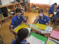 3年2組は「おおひらふじ幼稚園」に行きました。そこで幼児とふれあい、じゃんけん列車やすごろく、かるた取り、お絵かきなどを一緒に行い、交流を深めました。