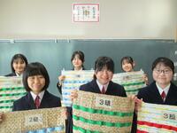 11月より準備してきた学校貢献活動を実施しています。今回は学年全員で取り組んだ「あいさつ運動」について紹介します。1月16日(金)~30日(金)までの期間、朝7:50~8:00まで昇降口に3年生が生活班ごとに立ち、後輩に向けて挨拶運動を全員で行いました。クラスごとにオリジナルのたすきを作り、これまでの生徒会や学級委員が行ってきた活動をバージョンアップさせて取り組みました。当番の日には早めに来て準備する姿も見られ、3年生として自覚と責任が表れていました。