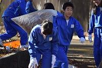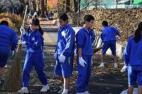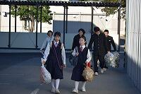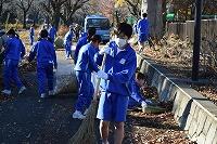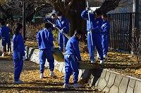 5校時、すばる会(老人会の皆様)の皆さまと1年生で、校庭南桜並木の落葉拾いボランティアを行いました。