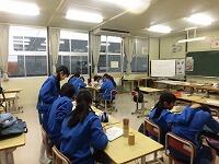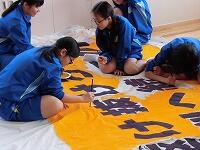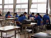 地域のボランティアの方を招いて,けやき学習会書道が行われました。生徒たちは,ボランティアの方に書いていただいた手本をもとに,書道の課題を完成させました。