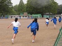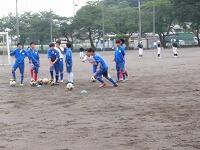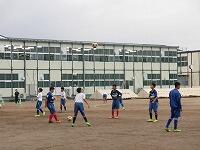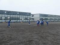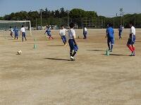 サッカー部は4対4でスペースを見つけてそこに走り、パスを出す練習をしていました。