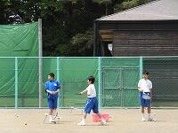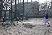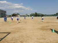 野球部は硬式テニスボールを使ったバッティング練習の様子です。