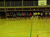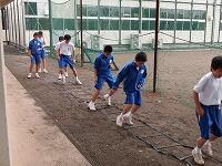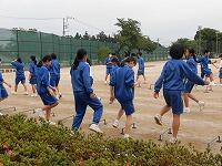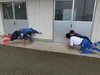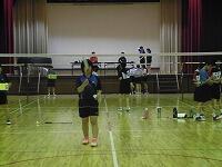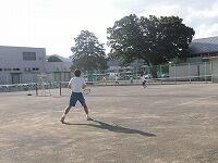 ソフトテニス部はサーブ時の体の使い方の練習を熱心に取り組んでいました。
