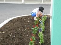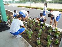 緑化委員会では、今年もグリーンカーテンを育てることになりました。今日の委員会活動でゴーヤを植え付けしました。このゴーヤの苗は、厚生センターからいただいたものです。ありがとうございました。明日から毎日、クラスごとに水やり