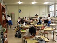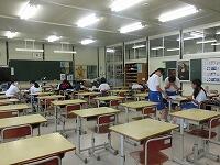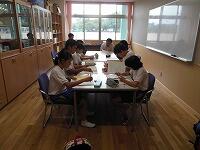 本日は,男子バレー部,ハンドボール部が午前中に練習を行い,午後は多目的室を使って学習会を行いました。夏休みの課題を進めたり,24日に行われる実力テストに向けた学習を行いました。