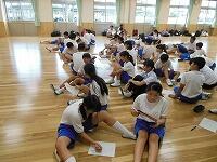 明日,終業式を迎え,21日から夏休みに入ります。本日は,夏休み中の学習や生活についての話を中心に集会を実施しました。また,21日から運動部は地区大会が始まります。地区大会に向けての心構えも確認しました。