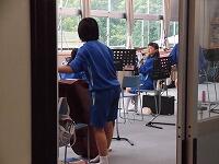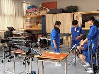 吹奏楽部はパートごとに分かれて練習したり、全員でリズムの確認をしたりしていました。