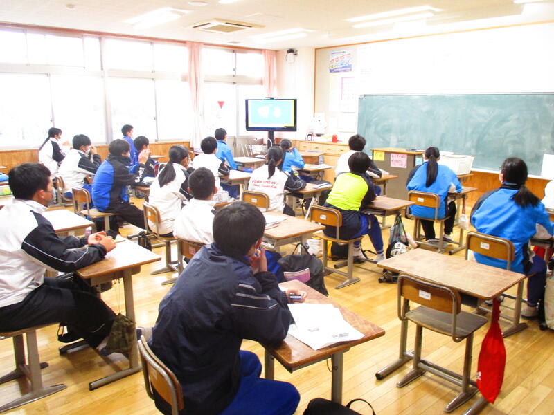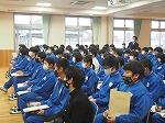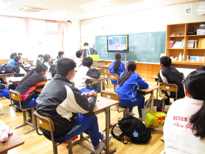 2月28日(水)5校時、ケーブルテレビ(株)安生恵子様を講師にお招きして「生き方学習」講演会が行われました。テレビ番組を制作する上で、「ディレクター」や「プロデューサー」の仕事について聞きました。その中で、「地域の役に立ちたい」という思いでスタッフの皆さんが働いていることを知り、生徒たちは感心して聞いていました。また、「視野を広く持ち、素直な気持ちで、人の話を聞く」というアドバイスにうなづく生徒も多くみられました。