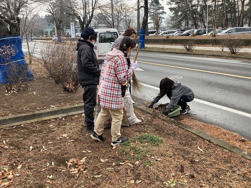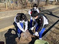 今年は、大平町シニアクラブ約40名の方々にご協力いただき、中学校の校地と隣接している桜並木の歩道を中心に、きれいにすることができました。大平町シニアクラブの皆様、ご協力ありがとうございました。