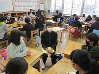 1月27日(金)⑤⑥校時、小学校の総合的な学習の時間に、来年入学する6年生に対して中学校生活を説明するため、大平東小学校に5名、大平西小学校に12名の計17名で訪問し交流してきました。自己紹介から始まり、小学生へのアドバイス、質問事項に対する答え、中学生からのメッセージ等、和やかな雰囲気の中で活動してきました。