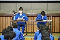 ・3年生は入試・卒業に向け、1、2年生は進級の準備期間として、それぞれ頑張ってほしい。そして、頑張っている友達を全力で応援しよう。(校長)