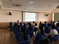 6月14日(金),「保護者・教職員合同研修」を開催しました。研修会は二部構成とし,一部を講話,二部を座談会としました。講話内容は,コーチングの有資格者である髙橋美香さんをお招きし,演習形式で「親と子の関わり方」について学ぶことができました。また,保護者と教職員との座談会では,日常生活のちょっとしたエピソードから中学校生活全般に至るまで幅広い話題を話し合うことができ,とても有意義な時間となりました。