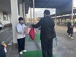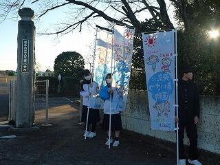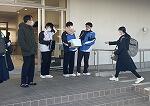 本年度から保護者の皆さんに、生徒のテスト期間に合わせて下校指導のお手伝いをいただいています。今回は、2月6日から9日までの4日間行いました。お手伝いいただいた保護者の方から「子どもたちがあいさつしてくれてうれしい。」等の言葉をいただきました。次年度も継続して実施する予定です。期間中は、学校の職員玄関に、横断旗や腕章を用意していますので、時間の都合の付く範囲でご協力お願いいたします。