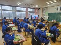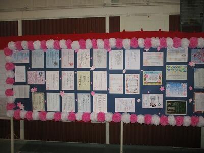 1月23日(月)~27日(金)は、校内学校給食週間です。給食に携わる全ての方々へ感謝し、健康な心と体づくりのために食習慣を見直していくなどの目的に毎年実施しています。廊下にはポスターや標語を掲示、お昼の校内放送では給食作文の発表をしました。