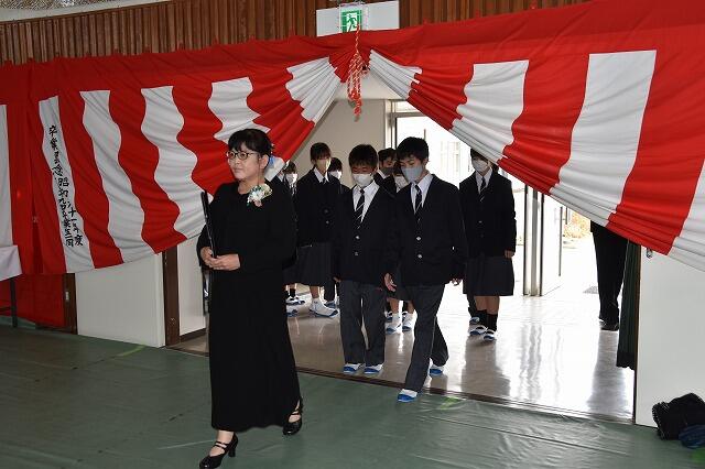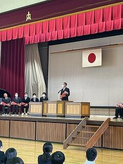 令和6年3月11日(月)に第76回卒業式が行われました。新型コロナウイルス感染症の5類への移行を受けて、本年度は、在校生全員が体育館に入り、副市長様、学校運営協議会委員の皆様、PTA本部役員の皆様のご臨席を賜り、実施することができました。