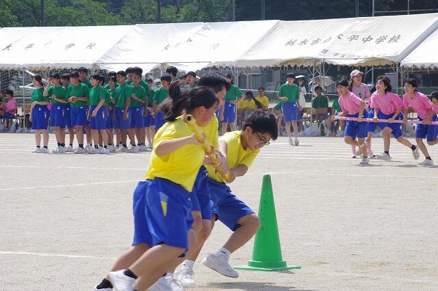 5月24日(金),第76回大平中学校運動会が晴天のもと開催されました。生徒はこれまでの練習の成果を存分に発揮し,競技・係活動に全力で取り組みました。自分が参加する競技に加え,仲間たちへの声援も必死で行いました。平日にもかかわらず,保護者の皆様にも大勢参加していただき,会場全体が熱気に包まれ,とても素晴らしい運動会を実施することができました。