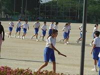 今週土曜日の運動会に向けて,始業前にクラスや色別対抗競技の練習を行っています。