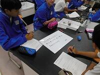 2年2組において,理科の研究授業を行いました。化学変化と熱の出入りについて,発熱反応・吸熱反応の実験を行い,熱の出入りを体感しました。だれもが楽しそうに実験を行っていました。