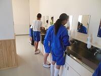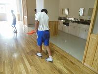 新しい校舎をきれいなまま後輩たちに引き継ごうと,清掃は皆一生懸命行っています。